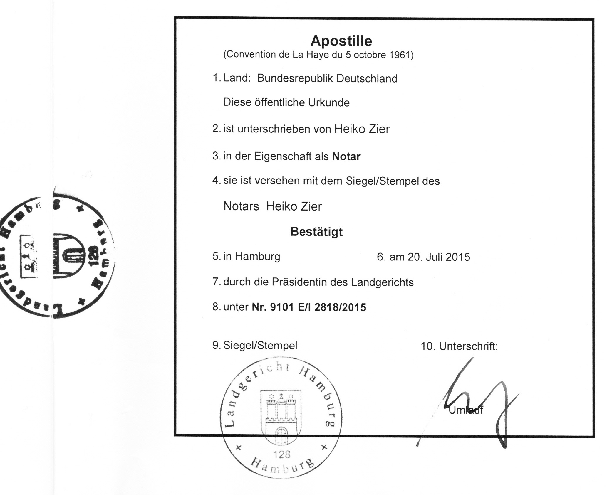 Durch StGBl. Nr. 139/1918 vom 19.12.1918 ist der Landesnotar nach dem Notargesetz der gesetzliche Vertreter des Landes unter der deutschen Verfassung vom 11.08.1919 nach Art. 6, 50 EGBGB durch Vertrag von Saint-Germain vom 10.09.1919 Deutsch-Österreich gemäß Art. 123 GG. Die Urkunde des Gerichthof der Menschen ist original akkreditiert beglaubigt mit zusätzlichem internationalen Charakter nach dem haager Abkommen über die internationale Überbeglaubigung und dem wiener Übereinkommen des Recht des Vertrages.